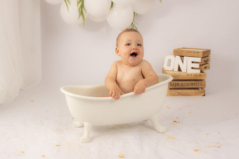 Tijdens de fotosessie maken schone foto's en cakesmash foto's die de vreugde van dit speciale moment vastleggen. Na de cakesmash bieden we een badder sessie aan, waarin jouw kindje heerlijk kan spelen en zich kan schoonmaken. Dit zorgt voor nog meer leuke en spontane momenten die we in beeld brengen.
